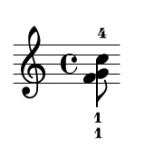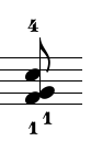 Jetzt müsste quasi noch das c drüber stehen (mit 4) aber ohne den zusammenhaltebogen, weil der sich ja nur auf zwei der drei noten bezieht...